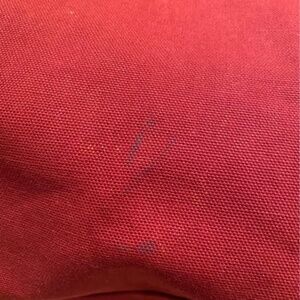 Burgundy oval table covering with edge to wrap table & stay in place, thick duck fabric, excellent for protecting table crafting & during kids projects, great condition (couple marks from use crafting). Not fancy, but a good sturdy table protector that won't slide off the table.