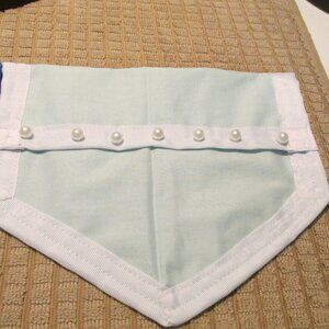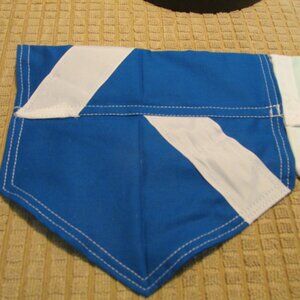 New - handmade over the collar, reversible scarf/bandanas. Just slip your dog's collar through the pocket and place the collar back on your dog, no tying required. All three are mediums (Approx. 8 1/4 X 7 1/2 inch). From smokefree home. Price is for each. Message which ones you want if buying less than all three.
