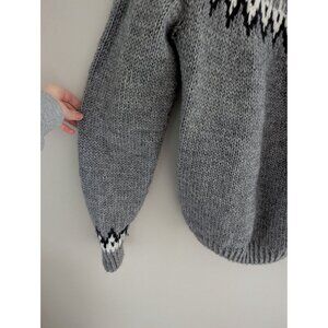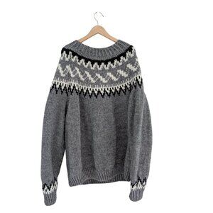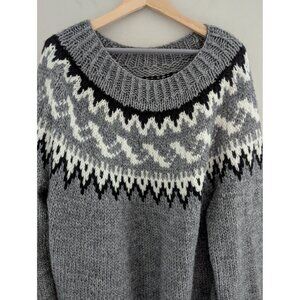 Handmade Oversized Fair Isle Pullover Knit Gray and Black Sweater Size L or XL