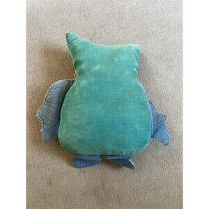 Handmade Owl Plush Pillow Corduroy Teal Blue Stuffed Animal 12" x 11" Soft Toy