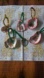 Set of oyster shell ornaments featuring colorful gift designs. Perfect for holiday decor.