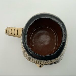 This handmade and hand painted coffee mug features a design for Dia de los Muertos. This sugar skull is made with red clay. The decorative mug can hold both hot and cold beverages and comes with a sturdy handle. It is perfect for Day of the Dead celebrations and as a collectible item. The mug should be hand washed only and is an original piece made in Mexico.