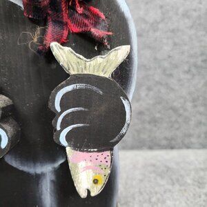 Handmade Paper Towel Holder Wood Bear Holding Trout Fisherman Cabin Country