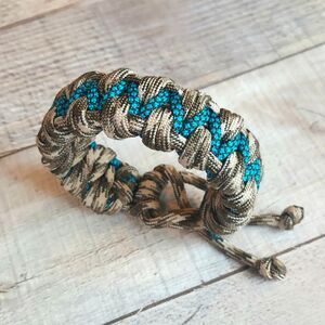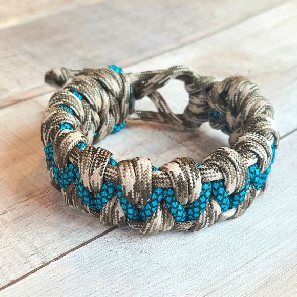 Handmade Paracord Bracelet Adjustable Unisex Turquoise Diamond Brown Desert Camo