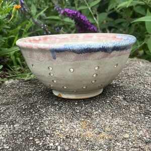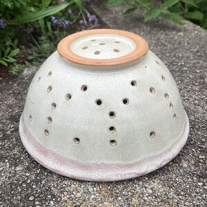 Handmade Pastel Glaze Redware Strawberry Blueberry Berry Bowl Strainer Colander