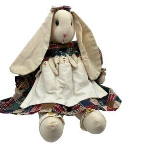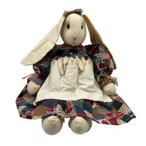 Handmade Patchwork Bunny Doll With Three Baby Bunnies In Apron 18" Plush Decor