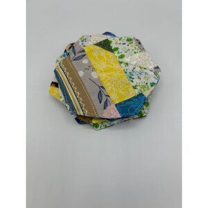 Handmade Patchwork Fabric Coasters Set Of 6 Hexagonal Shape Multicolor Cotton Qu