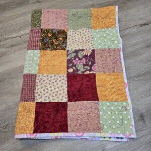 Handmade Patchwork Lap Quilt Homemade 50"x35" Multicolor Fall Colors Music Notes