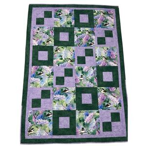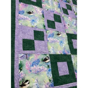 Handmade Patchwork Quilt Throw Lap Blanket 56” x 39” Lilac Chickadees
