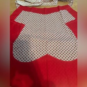 Stylish red apron with a white patterned design. Perfect for cooking or baking. Handmade Patterned Apron