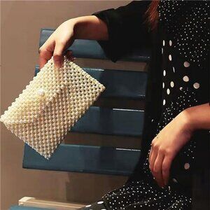 Handmade Pearl Beaded Clutch Purse Crossbody Shoulder Bag Wedding Evening