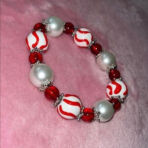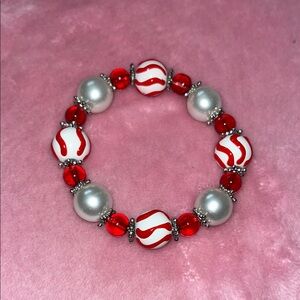 Handmade Peppermint Red and White Beaded Bracelet