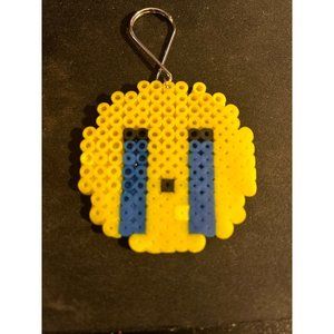 Handmade Perler bead crying emoji keychain