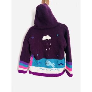 Handmade Peru Alpaca Llama Bird Knit Sweater Hoodie 2T 3T Purple Bright Colors