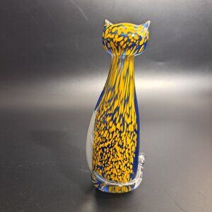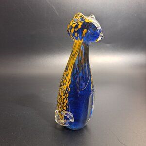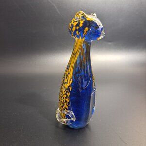 Handmade Pfeiffer Blown Glass Cat Figurine Blue Yellow Art Decor Collectible