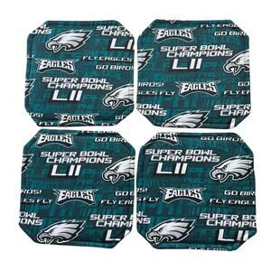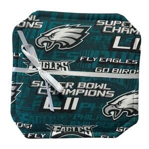 Handmade Philadelphia Eagles Hot Mats Trivet Set of 4 8" x 8" Football Gift. Perfect for the Eagle's fan in your life! Superbowl Champions! Fly Eagles Fly! Washable cotton fabric with interior batting. Ideal to go under any hot dish on your dining room table. Fast shipping.