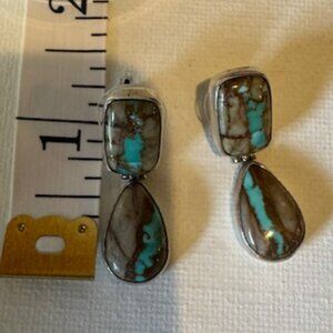 Handmade Pierced SW Turquoise Stone and Sterling Silver Drop earings
