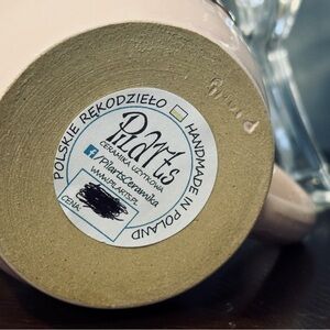 This beautiful large art pottery mug was handmade in Poland as noted on the printed backstamp on the base. The mug measures approximately 4.25" tall and 4.25" in diameter at the rim and holds 16 ounces. It is in very nice new condition.