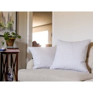 22 x 22" Decorative Pillow Cover in Designer 1/8" Ticking/Stripe Gray (looks more like light black) and Ivory background