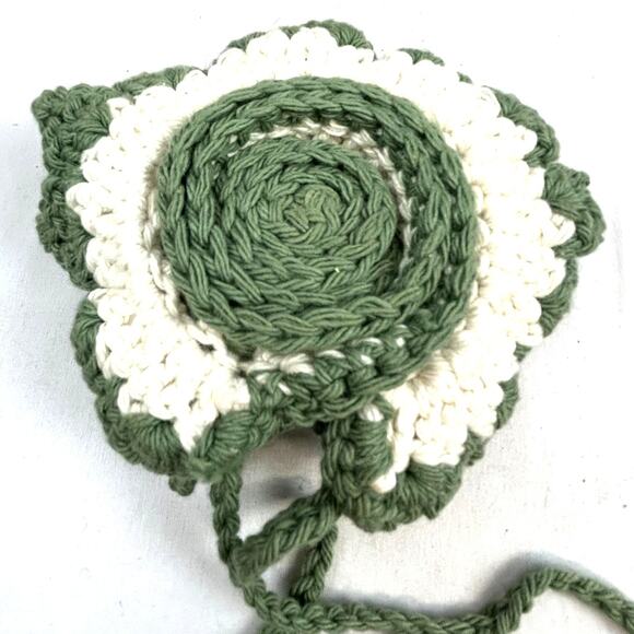 Handmade Pin Cushion Hat crochet green and white NWT USA 6 inches round