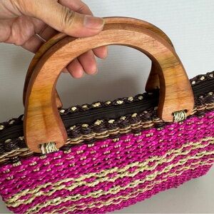 Handmade Pink & Beige Woven Handbag from the Philippines