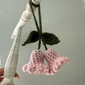 Handmade Pink Crochet Flower Key Chain Purse Decor