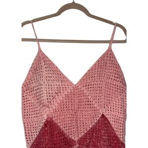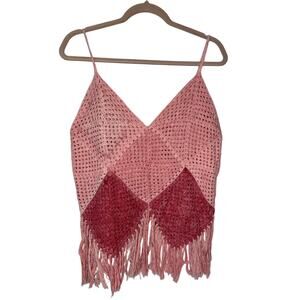 Handmade Pink Crochet Open Knit Fringe Hem Boho Festival Tank Top Size XS