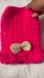 Charming pink crochet dog dress featuring a cute cream bow. Perfect for adding a touch of handmade elegance.