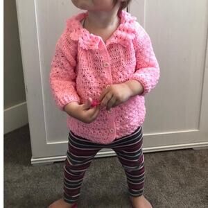 Handmade Pink Crocheted 9-12m Baby Cardigan Sweater
