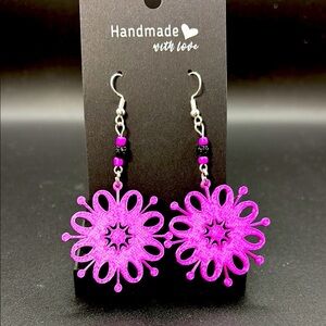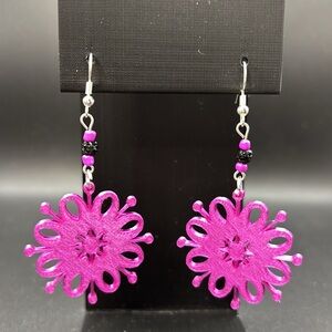 Add a pop of color with these handmade pink floral earrings. Perfect for any occasion.