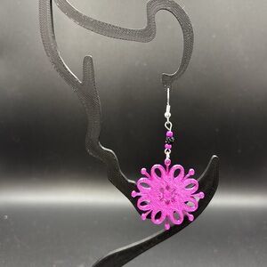 A nozzle dispenses PLA Filament at a high temperature to create a 3D print layer by layer. The print is created from the bottom up and details of this process can be seen in the finished product. If you look closely at our earrings, you may see lines that are indicative of the path the nozzle traveled to create the piece. Because of this, 3D Prints are NOT to be compared to mass or commercially produced plastic pieces. Each one is unique, susceptible to variation, and shows distinct signs of its creation process that we believe adds character and sacredness . Hope you enjoy my homemade jewelry.