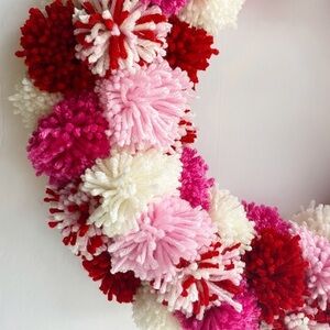Keywords: handmade custom wreath Valentine’s Day pom pom boho bohemian style home decor fun bright colorful accent door hand made pompom love anthro style