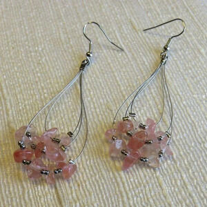 Handmade Pink Rose Quartz Gemstone Beads Triple Teardrop Loop 70mm Long Earrings