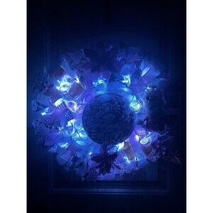 This wreath is built on a 14 frame. Perfect for decorating your home for Winter/ December Holidays/ Christmas . Fitted with 20 LED lights to illuminate at night; 3 modes.