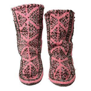Handmade Pink and Gray Knitted Slippers High Calf 17d