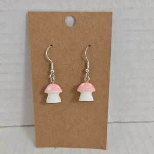 Cute pink and white mushroom earrings. Perfect for a whimsical touch.