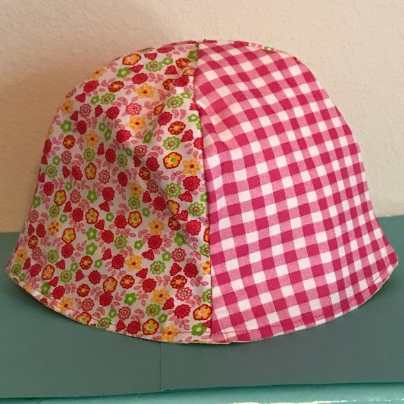 Handmade Pink floral/Gingham Floral Reversable Hat