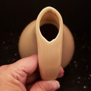 Handmade Pitcher Jug Ceramic Art Pottery Angle Spout Beige Tan Glaze Vintage