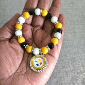 Handmade Pittsburgh Steelers Rhinestone Crystal Glass Bead Charm Bracelet