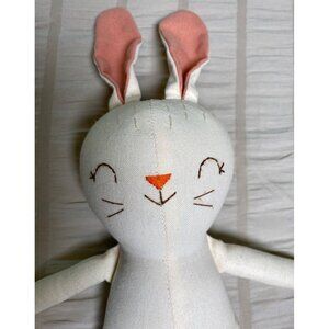 Handmade Plush Bunny Doll with Embroidered Face & Pink Ears, Nursery Room Decor