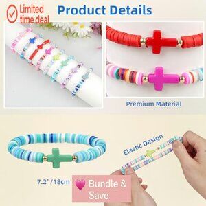 • **Style:** A set of 48 colorful, handmade bracelets featuring Christian cross beads and bright polymer clay beads in three distinct styles and multiple colors. The design is a charming expression of faith.