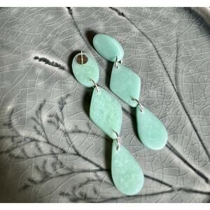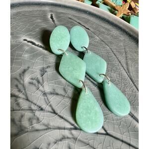 Handmade Polymer Clay Earrings Handcrafted Artwork Green Sea Glass Dangles