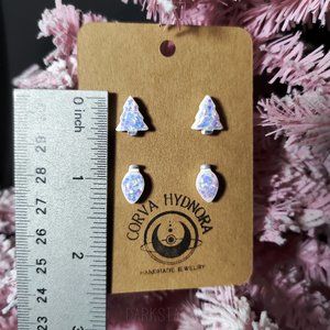 Handmade Polymer Clay Mini Christmas Tree and Bulb Stud Earrings .5"