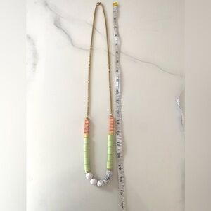 Handmade by me. Polymer clay statement necklace. Each bead was made individually. White marble, lime and pink. Gold beads and chain is gold plated brass. Nickel free and hypoallergenic. Recommended not to wear in water.