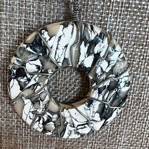 Handmade Polymer Clay Statement Necklace and Earring Set Black White Silver Tone