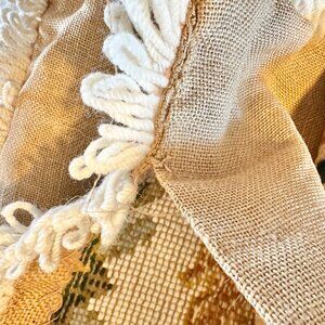Handmade Portuguese Needlepoint Pillow Covers Set of 4 Wool Burlap Fringe 17x17
