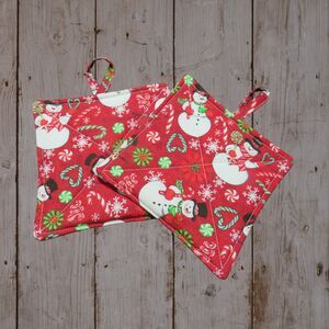 Handmade Potholder, Set of 2, Reversible Christmas Snowmen and Penguins Quilted Hot Pads.