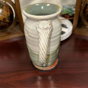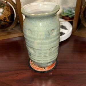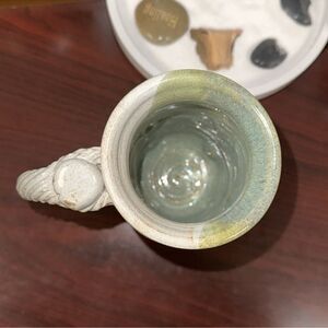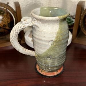 Handmade Pottery Artist Stamped Green Stone Gray Ivory Tall Mug
