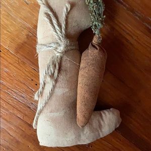 Handmade Primitive Rabbit with Carrot and Jute Bow.