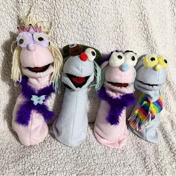 Handmade Puppets I made for my puppet ministry a few years ago. Some of the small kids couldn't hold the bigger puppets up so I made some